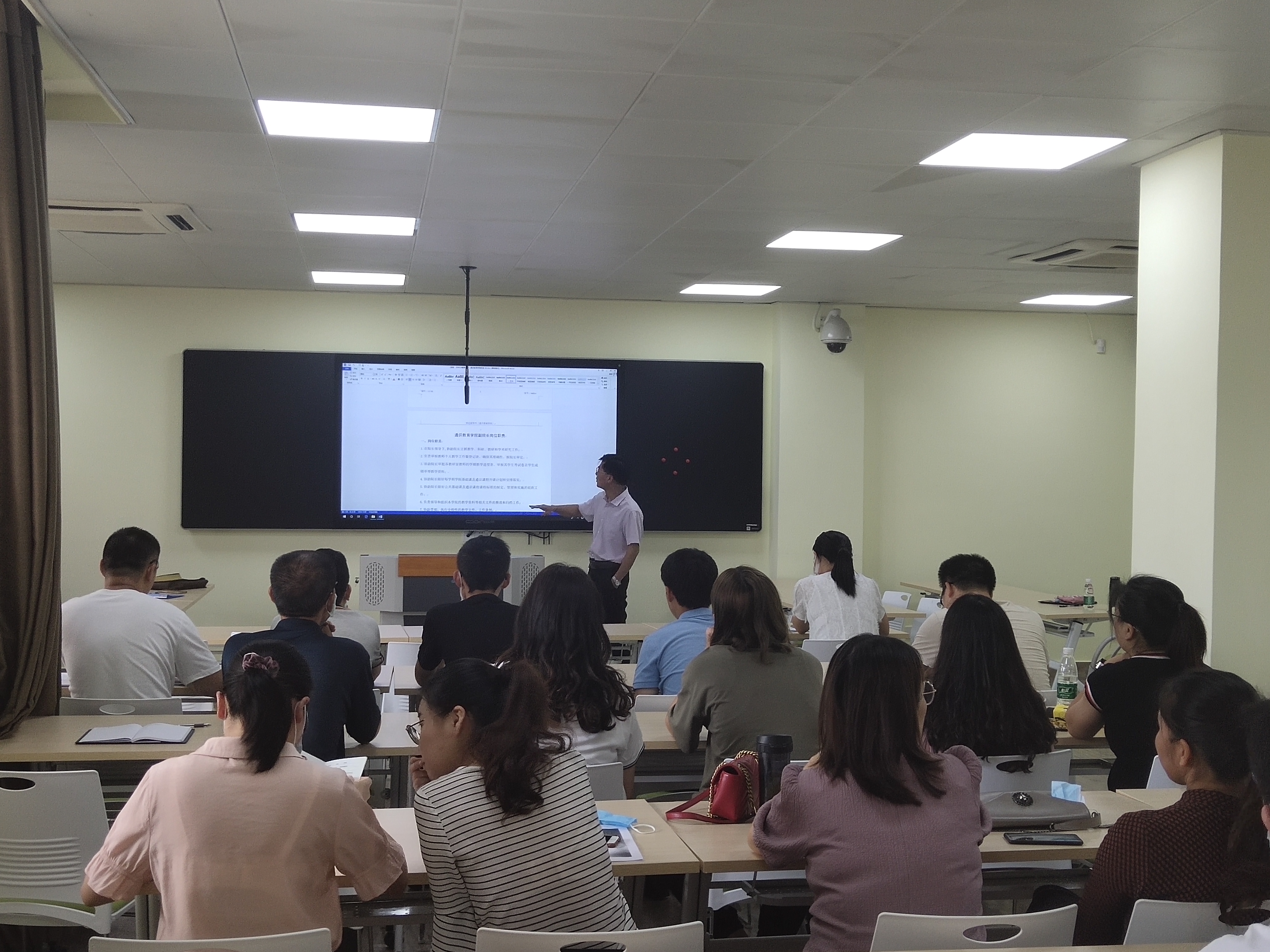 梁院长也在会上强调了注意事项:要求各位老师要整理好期末教学资料,比如教案、教学情况登记表等,并在规定的时间内上交到各教研室主任,同时做好教学工作量统计。