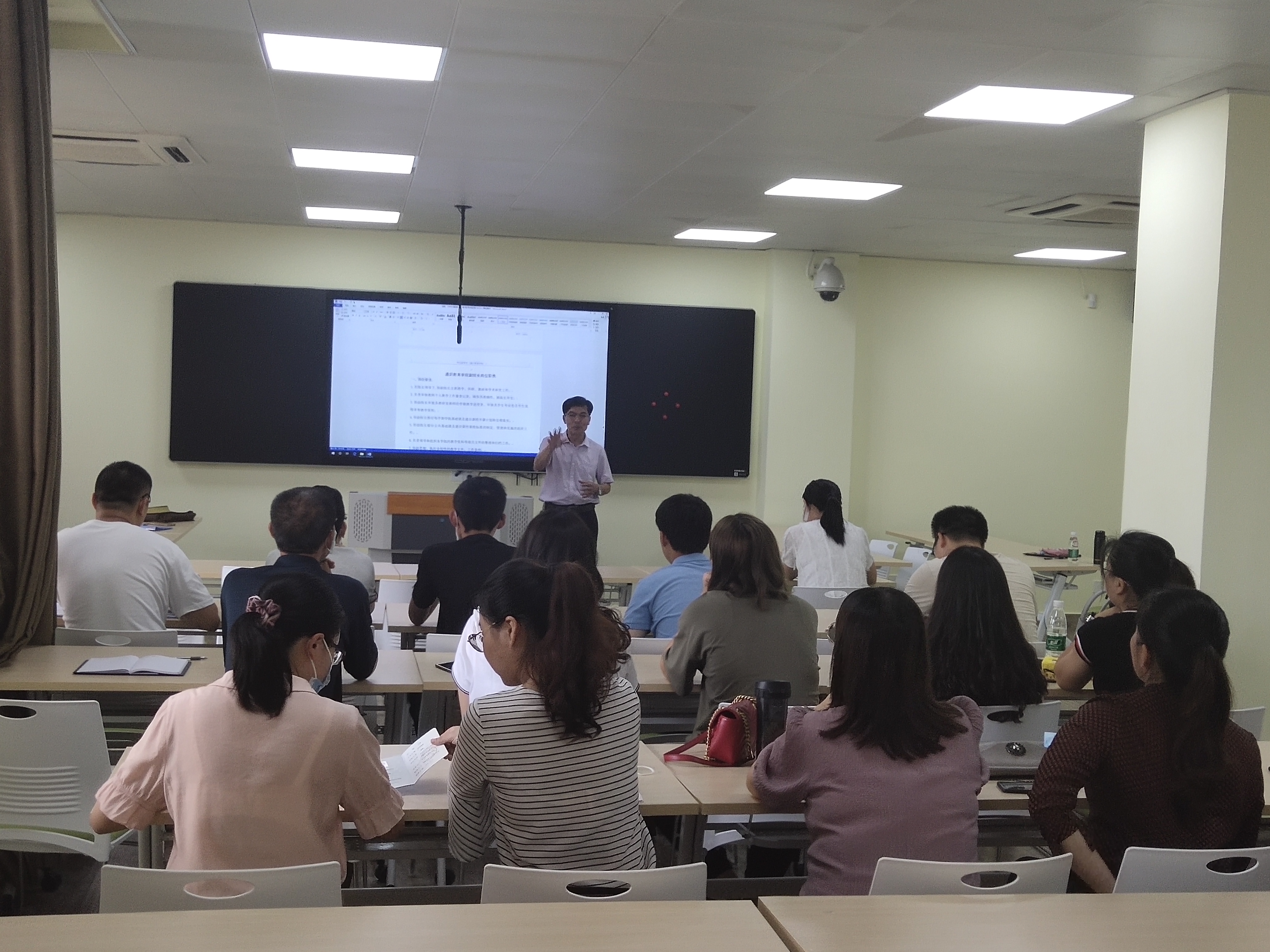 2020年7月1日下午,我院于行政楼智慧教室开展期末工作部署会议,本院全体教师参与会议,会议由黄演卿院长主持。