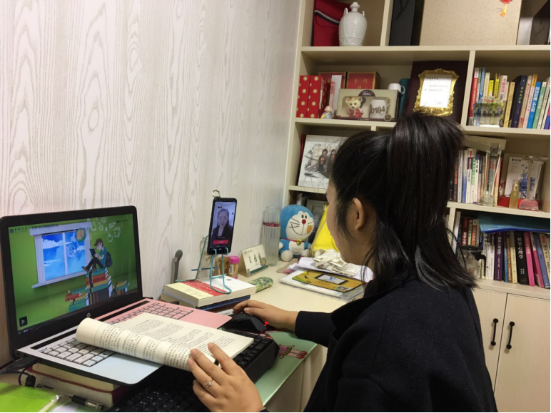 和大多数人一样,我经历了开始的各种慌乱,对直播软件一窍不通, 各种操作,各种转换让我头疼欲裂, 但是面对现实,我告诫自己,这正是自己跟上时代的机会,发动家庭所有的力量帮助我,物质支持,技术支持必须一呼即应。 家里解决不了的,就咨询同事,在心惊胆战中第一节课还算顺利,我松了一口气, 第二天就出现了严重的卡顿现象,导致我“仓皇脱逃” 。 又是不停的整改。 终于连续流畅的上了几天课。 课件提问、学生练习能从容转换, 这一成功还让我喜欢上了上直播课。