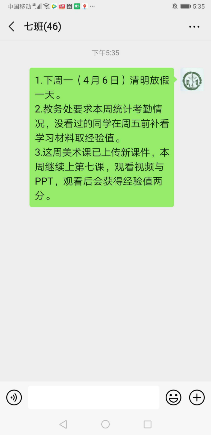 3、每周课前教师在班级微信群通知学生今天学习的内容和要求。