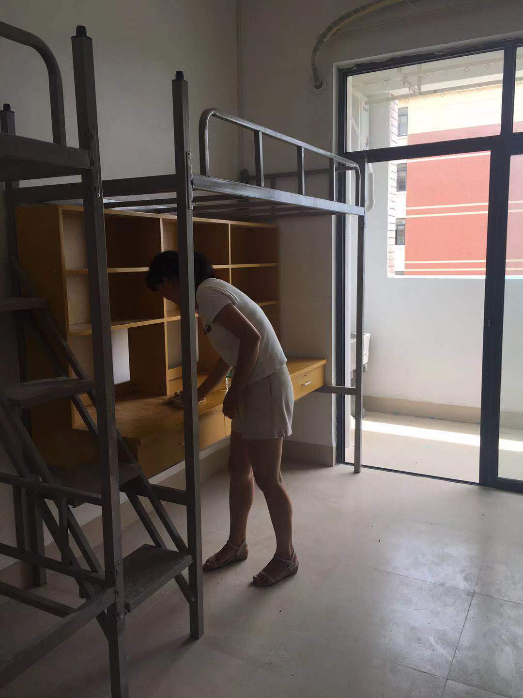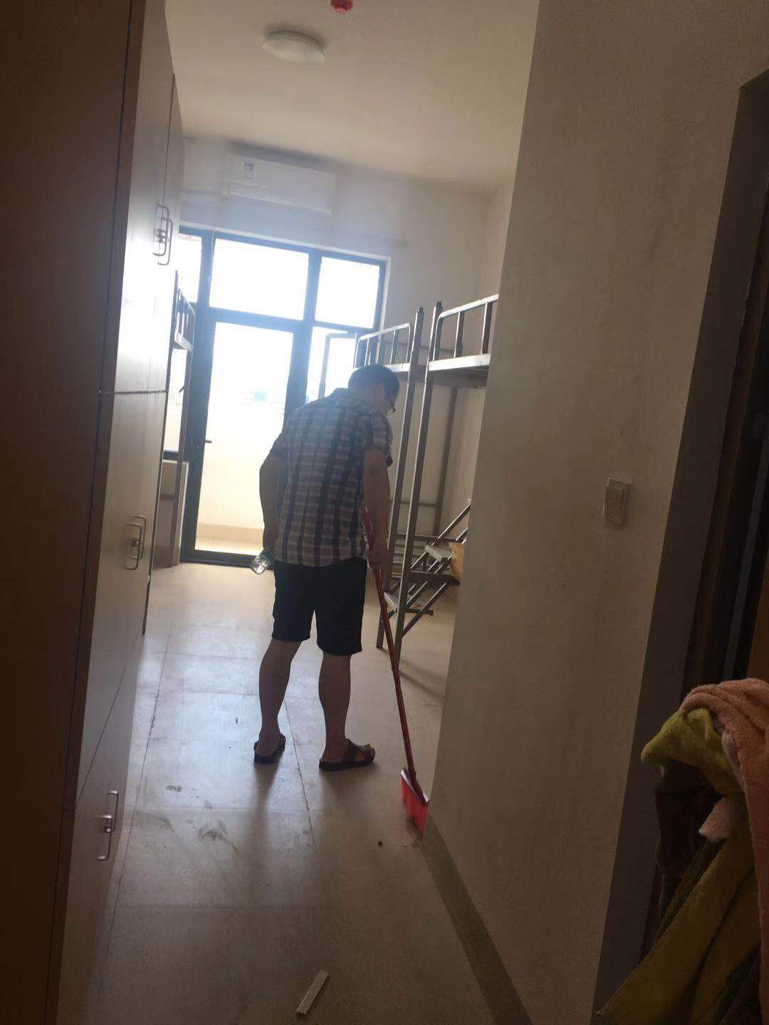 在学生宿舍楼,老师们在学院院长的分工下井然有序地开展清洗工作,门窗、桌子、床铺、地面积灰被清理干净,并细心为学生装上床板。经过大家的辛勤劳动,为同学们营造了一个良好的宿舍环境。