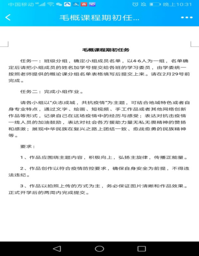 确定方案后马上进行开课准备。思政教研室要求教师必须迅速掌握学生基本情况,例如各班级学生数、名单、辅导员联系方式、是否有情况特殊学生等。随后在各班班长及辅导员辅助下建立思政教学专用群(微信群或QQ群),通知到位,要求各班级学生加入相应群中,方便开展教学工作。