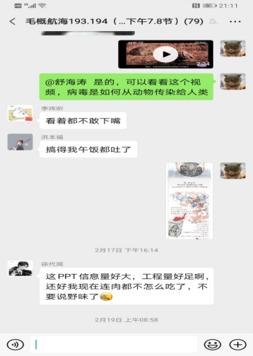 运用大学慕课网站精品资源进行线上教学,对教师的线上课堂把控力度的考验可以说是相当大的。毕竟老师在这头,学生在那头,人海两茫茫。因此,我们教研室各位教师使劲浑身解数,通过各种方法来把握资源分享式的在线教学方式。例如在课程进行过程中,教师时刻把握节奏,及时把该课程的教学重点、难点单独提出来,放在群里面与学生进行深入讲解,对学生在观看视频过程中遇到的不理解、不明白的内容及时进行解析,并将课堂过程中的互动作为评分依据,以此激励学生更加积极主动地参与到课堂中来。