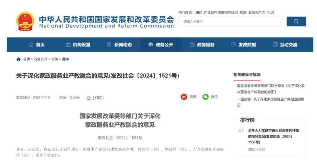 近日,国家发展改革委会同教育部、财政部、人力资源社会保障部、商务部联合印发《关于深化家政服务业产教融合的意见》(以下简称《意见》),促进家政教育链、人才链与产业链、创新链相衔接。《意见》明确:鼓励退役军人等群体投身家政行业创新创业。
