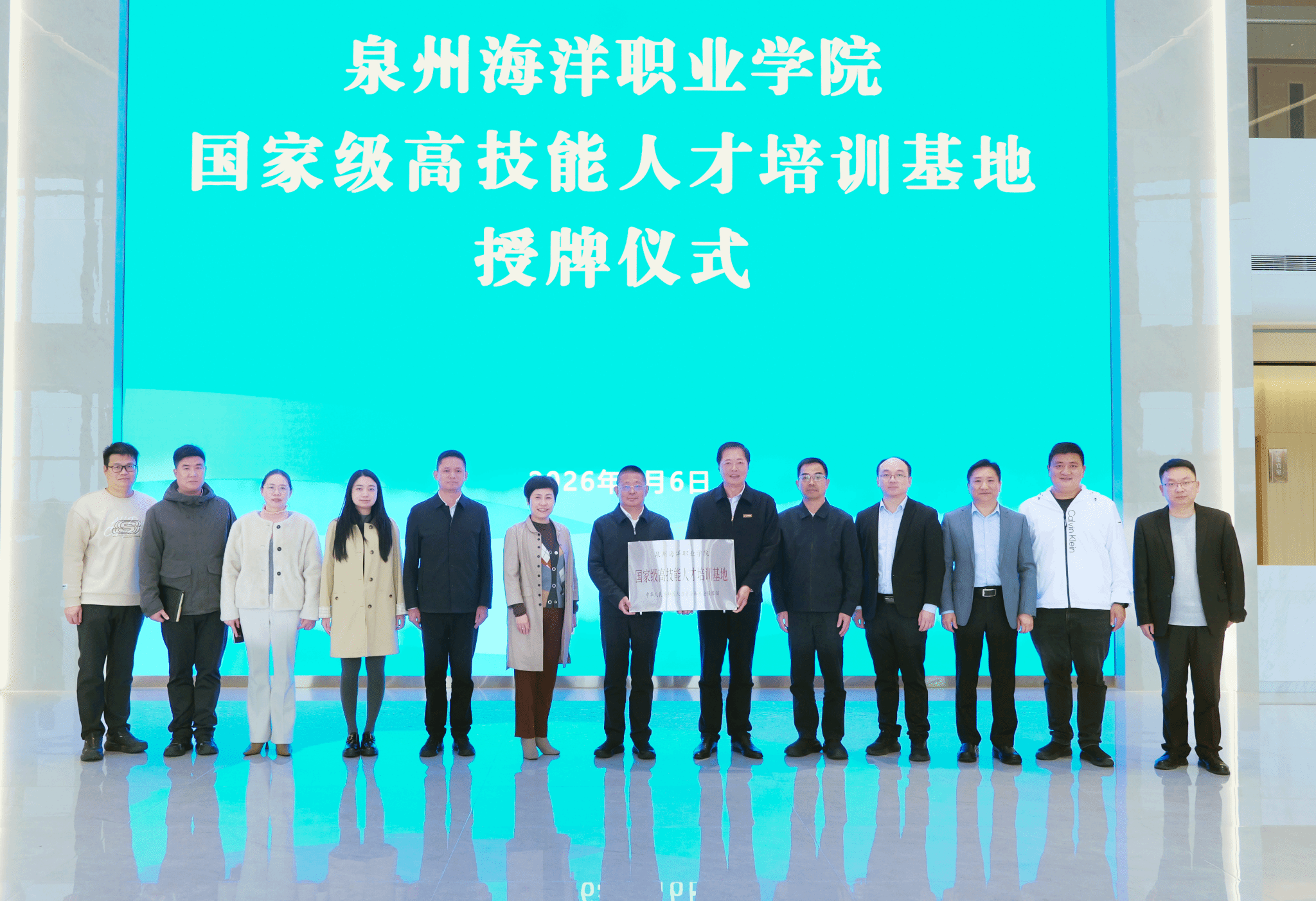 许长春为泉州海洋职业学院颁授“国家级高技能人才培训基地”牌匾。