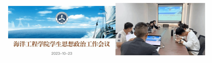 10月23日下午,海洋工程学院在图书馆东侧809会议室召开学生思想政治工作会议。党支部书记周甜、副书记俞建梁及全体辅导员参加。周甜书记强调,学生思想政治工作要以习近平新时代中国特色社会主义思想为指导,深入学习贯彻党的二十大精神,全面落实学校党委工作部署、“十四五”规划各项任务,紧紧围绕学院中心工作,锚定铸魂育人,加强学院联动,把提升学生思政教育质量作为核心,把落实“时代新人铸魂工程”作为牵引,树标杆、增亮点、创精品,努力培养堪当民族复兴重任的涉海类人才。