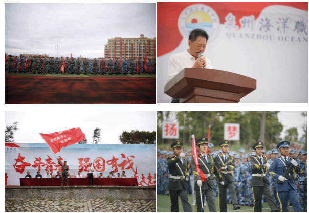 军纪如铁,意志如钢,齐心协力,共铸辉煌。又是一年新生军训时,10月7日,泉州海洋职业学院2023级新生军训暨国防教育思政大课堂在校足球场隆重举行。参加仪式的有校长庄伟廉,校党委副书记、副校长李明灿,石狮市人民武装部政工科曹耀华,学工部部长以及各二级学院院长、书记、副书记,2023级新生辅导员、参训教官、2023级新生参加开训仪式。本次仪式共7项议程。青春在汗水中闪耀,理想在磨砺中发光,愿2023级泉海学子,在未来的日子里,不懈追求 勇于拼搏,在此次军训中收获更好的自己,创造不悔的年华!