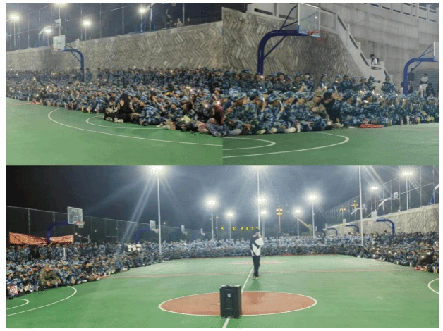 2023年10月17日晚,为为丰富军训文化生活,展现艺体学子的青春风采,我院于新篮球场举办2023级新生军训篝火晚会。