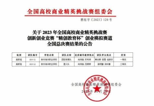 近日,由中国国际贸易促进委员会商业行业委员会主办的第十一届全国高校商业精英挑战赛创新创业竞赛落下帷幕。本次全国总决赛有来自全国350余所高校,近1500支团队,约8000名师生同台竞技,我院学子荣获一等奖一项、三等奖一项!