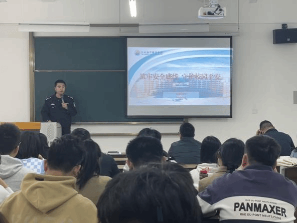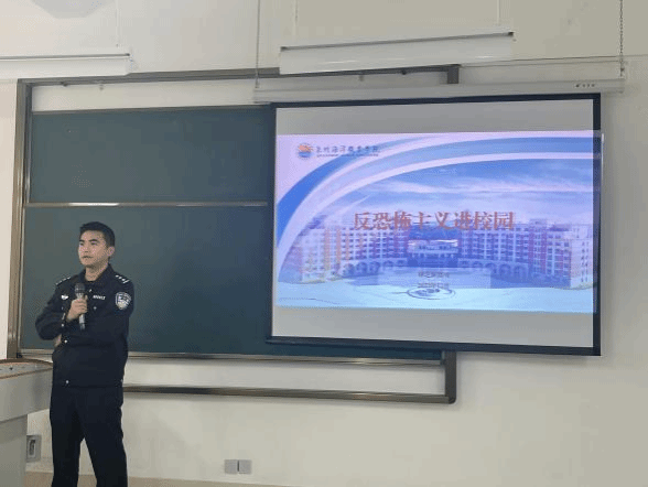 陈超伟警官从反诈、驾乘机车安全、反恐怖主义三个方面进行宣讲。先是通报近一个月校园内涉及学生受诈骗的警情并加以分析。通过一桩桩的案件,引起在场老师们的反思,随后与辅导员老师对于校园安全问题的解决防范方式进行交流,希望全体师生能防患于未然,为共建平安校园打下坚实的基础。