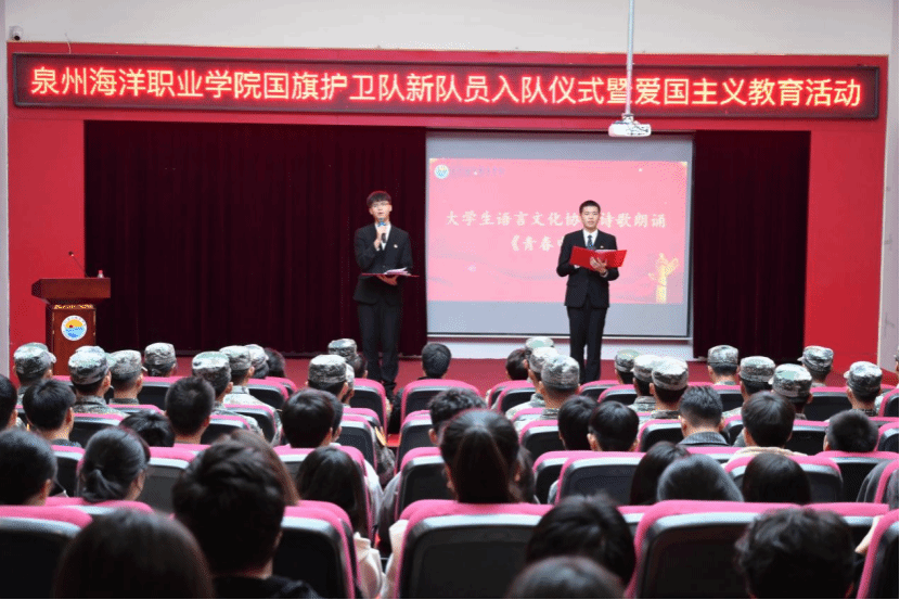2023年12月14日,国旗护卫队入队仪式暨爱国主义教育活动在我校2204报告厅成功举行。