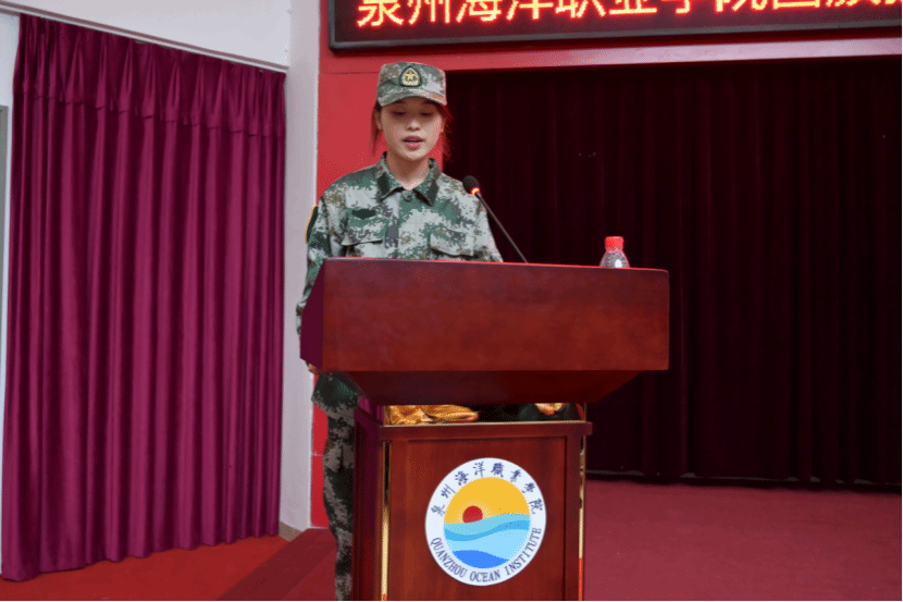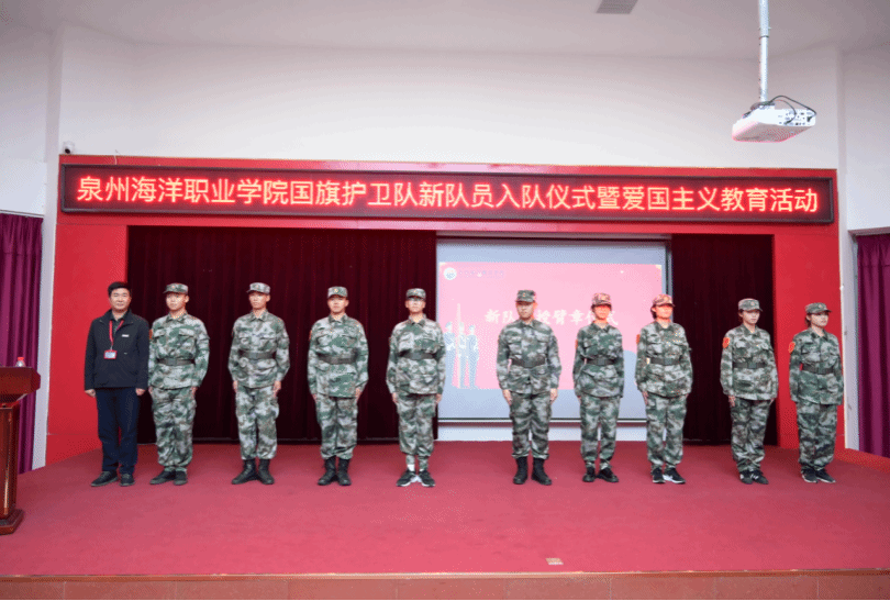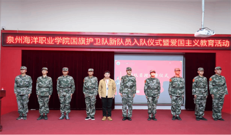 学生工作与发展部思政科科长、国旗护卫队指导老师蔡岱宏宣读宣读国旗护卫队新成员入队文件,同时希望队员们要时刻牢记护卫国旗的责任与担当,做五星红旗的守护者、爱国主义教育的传播者,以青春力量守护国旗荣光。