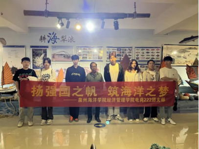 为深入学习宣传贯彻习近平新时代中国特色社会主义思想,引导团员和青年进一步学习领悟党的二十大精神,激发团员和青年奋斗精神,增强团员和青年担当意识,电子商务222班团支部开展“扬强国之帆、筑海洋之梦”主题团日活动,带领团员和青年前往石狮海峡渔文化博物馆参观学习,体验石狮渔业文化。通过此次主题团日活动,使电子商务222班团支部同学进一步了解了海洋文明发展历程,增强了爱国意识,牢固树立了海洋国土观念。