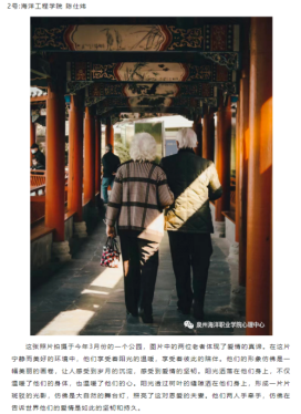 为大力弘扬中华民族尊老敬老的传统美德,用实际行动关爱老人。12月14日下午,泉州海洋职业学院信息工程学院2023级艺术设计233班前往龙人·伍心家园养老院,看望老一辈的社会建设者,为他们献上了亲切的问候和诚挚的祝福。本次活动既弘扬了“尊老、敬老、爱老、助老”的传统美德,又提高了同学们的服务水平和对老人的关心意识,与老人们来了一次青春与暮年的深度交流。希望同学们在以后更多的参与到各类志愿活动中去,送去更多温暖的志愿之风。
