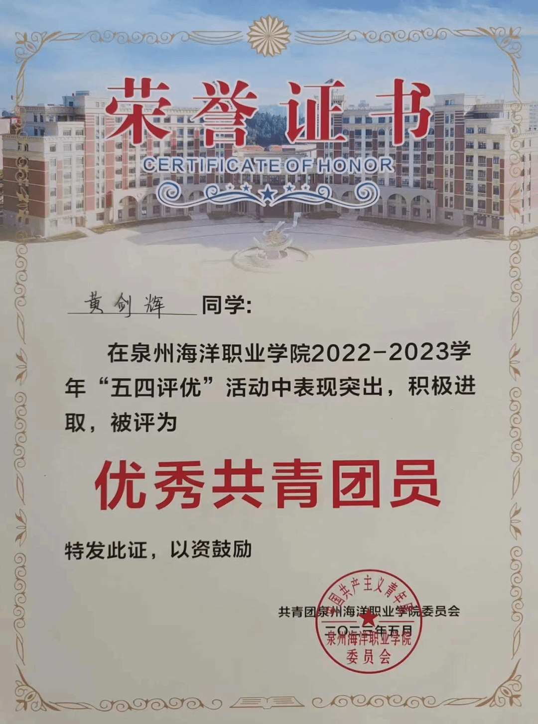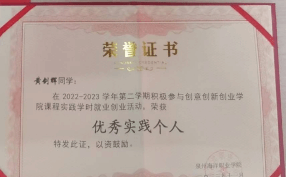 2024年01月荣获泉州海洋职业学院“大学生年度人物”;