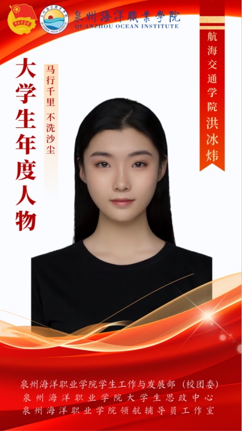 洪冰炜,黑龙江省齐齐哈尔市人,空乘221班学生,现担任航海交通学院团委、学生会秘书长,航海交通学院心理站副站长,宣传委员大队长。工作中,具备良好的团队协作精神和创新能力,能够为团队带来新的想法和思路,擅长沟通和协调,能够有效地解决各种常见问题,是一名勤奋好学的优秀大学生。