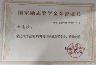 2023年11月荣获2022-2023学年“国家励志奖学金”;