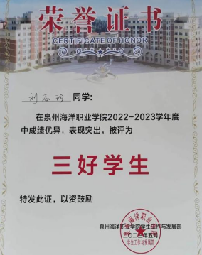 2023年05月荣获泉州海洋职业学院“三好学生”;