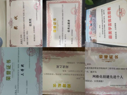 2023年获评海洋工程学院“团委优秀干事”荣誉称号——林欣妍、陈坤明、郑佳鸿