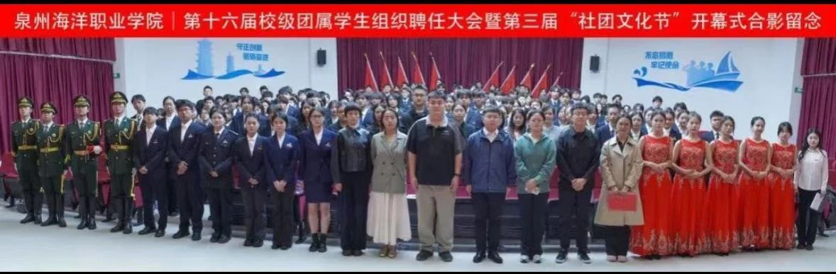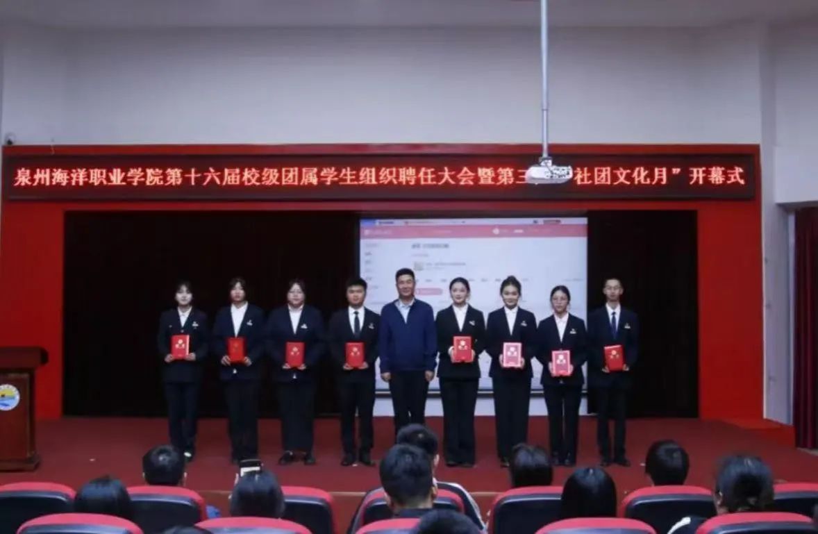 11月7日,我校在2204报告厅举行泉州海洋职业学院第十六届校级团属学生组织聘任大会暨第三届“社团文化月”开幕式。党委学工部部长张君,党委学工部全体老师,二级学院团委(团工委)书记,校级团学组织指导老师出席会议。