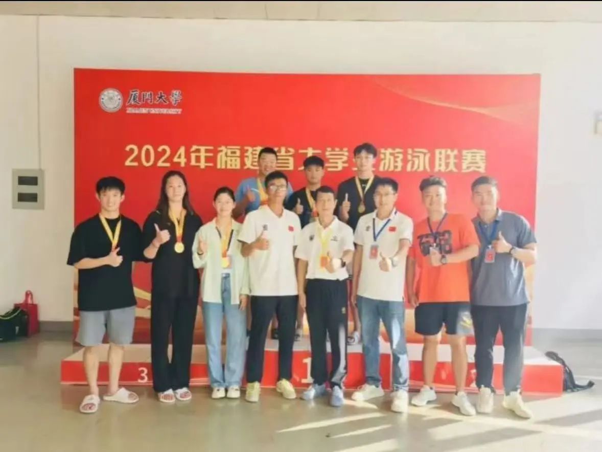 第 23 届中国大学生游泳锦标赛已圆满落幕。在艺术体育学院院长孙玉坤与教师蔡清泽、陈雅玲的带领下,我院学子蒋怡淳(2 金)、陈春良(2 银)、侯冉舟(3 金 1 铜)在大赛场上摘金夺银,并一举打破赛会混合泳纪录,三名同学与来自全省各高校的杰出游泳健将同场竞技,凭借出色的实力和卓越的表现,共斩获了 5 枚金牌、2 枚银牌,1 枚铜牌展现了卓越的竞技技艺与坚韧不拔的意志品质。