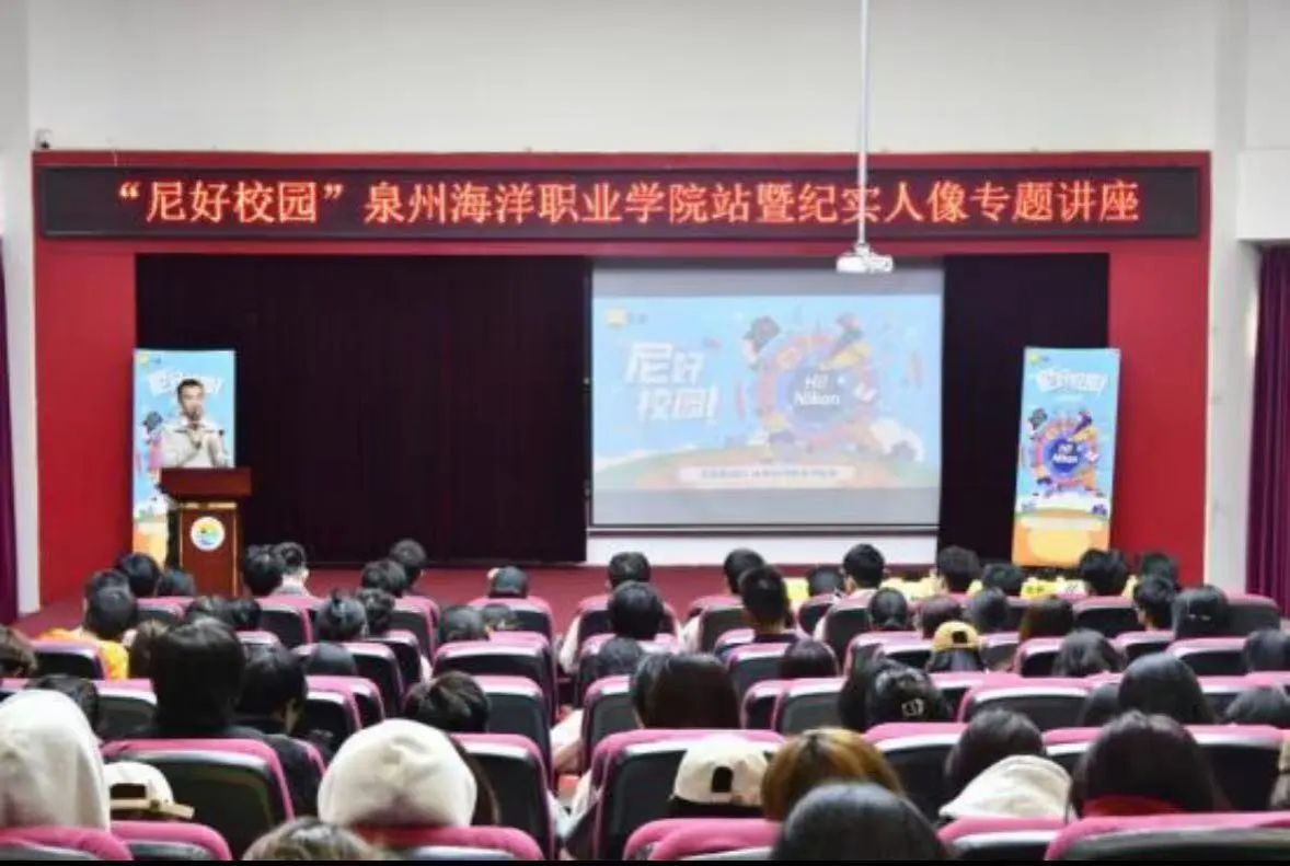 为展现摄影的独特魅力,定格瞬间、传递情感、讲述故事。11 月 22日,“尼康校园行”泉州海洋职业学院站暨纪实人像摄影知识专题讲座,在 2204 报告厅举办。尼康(中国)有限公司销售推进部总监陈西贝、泉州亿盛兴电子贸易有限公司马艺峰经理、摄影讲座老师曾俊鑫,党委学工部副部长、校团委书记余斐虎,校团委副书记肖伟强,信息工程学院党总支部书记陈合喜,信息工程学院党总支部副书记温馨及校院两级有关活动负责人出席本次活动,各获奖选手、有关兴趣社团、相关专业学生代表共同参加。