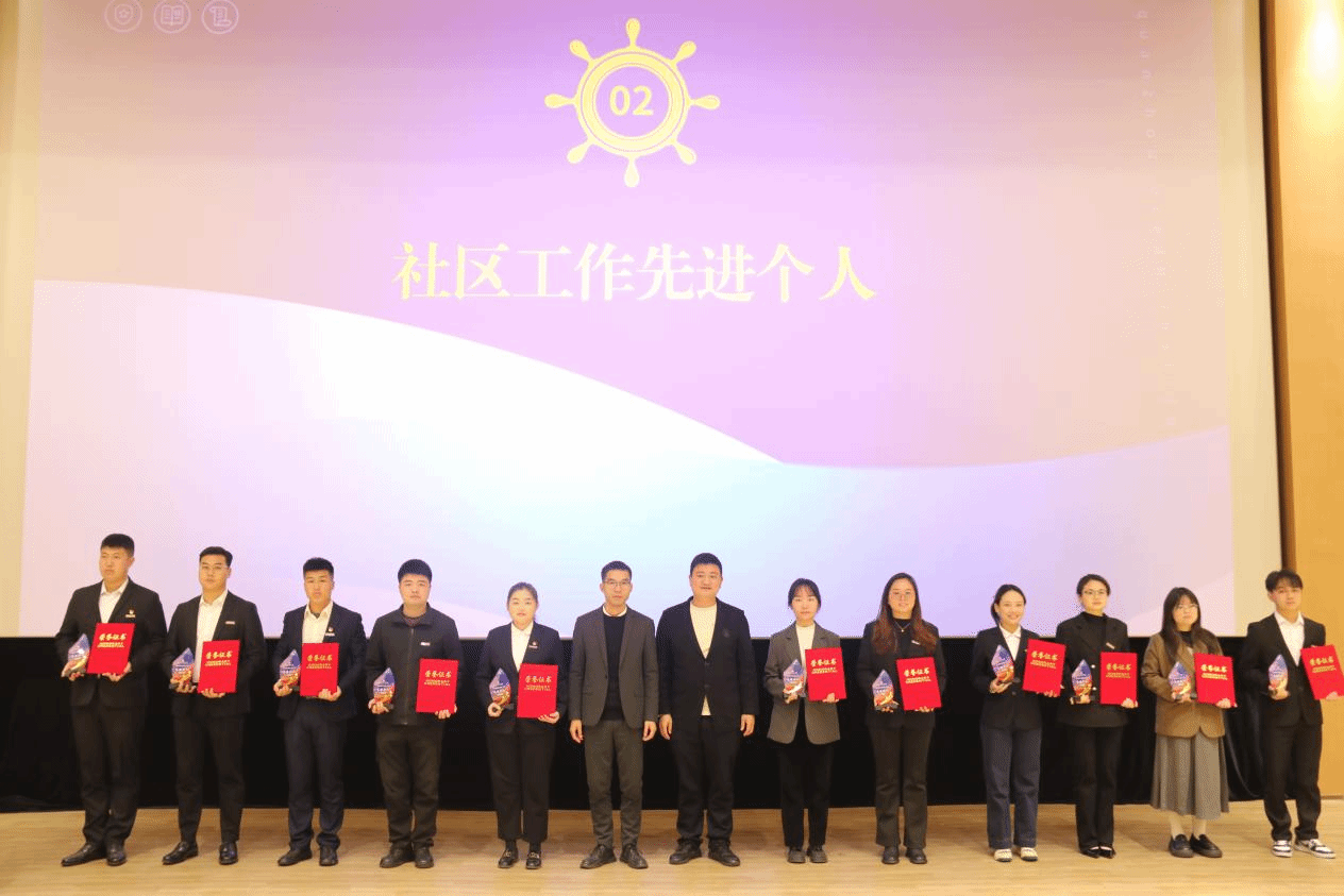 国防教育学院党支部书记苏良城,海洋工程学院党支部书记周甜共同为“社区工作先进个人”获得者颁发奖杯、荣誉证书。