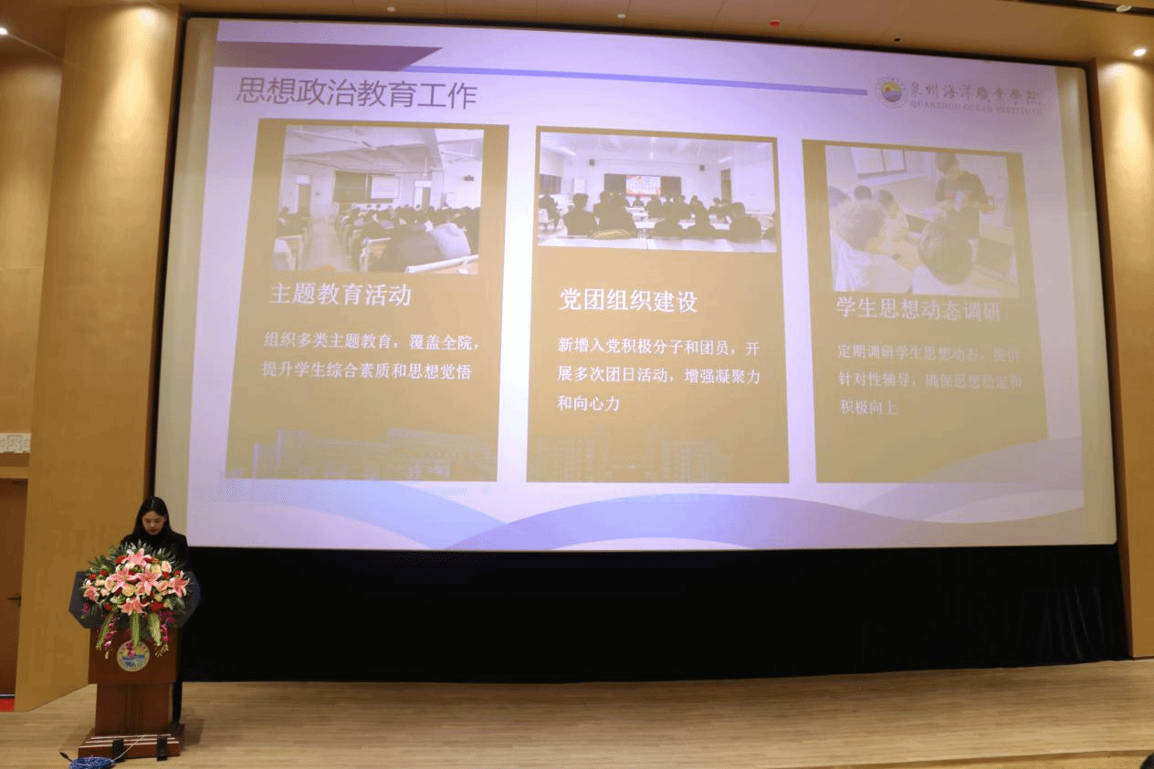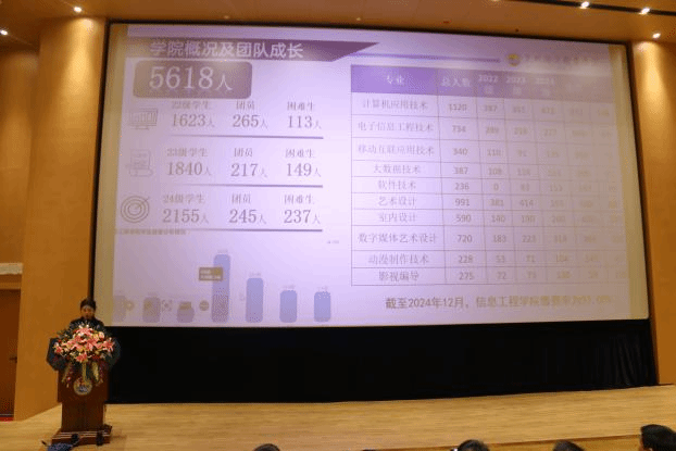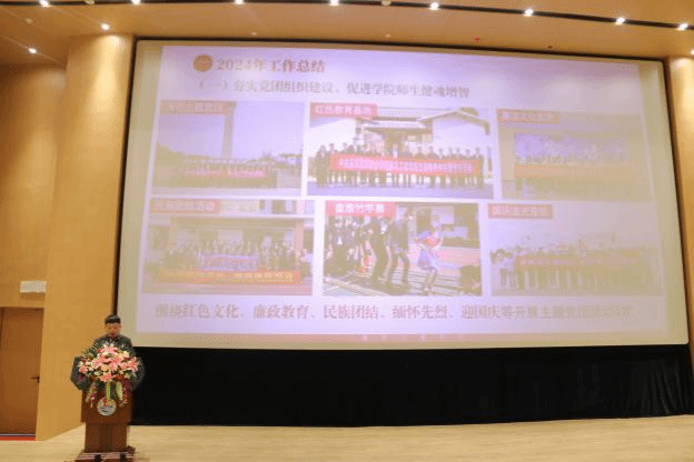 1月8日,为全面总结我校2024年学生工作经验成果,促进学院间学生工作的互学互鉴,不断提升学生工作体系化、内涵式建设发展水平,学校在图书馆报告厅举行2024年度学工系统总结暨表彰大会。校党委副书记、副校长李明灿,副校长陈东水,党委学生工作部部长张君,党委学生工作部副部长、校团委书记余斐虎,各二级学院党总支、直属党支部书记、副书记出席大会,学工部全体人员和全体辅导员参加大会。