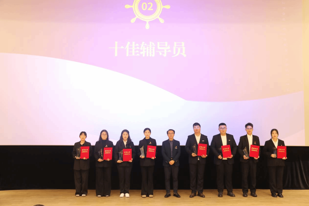 校党委副书记、副校长李明灿为“十佳辅导员”获得者颁发奖杯、荣誉证书。