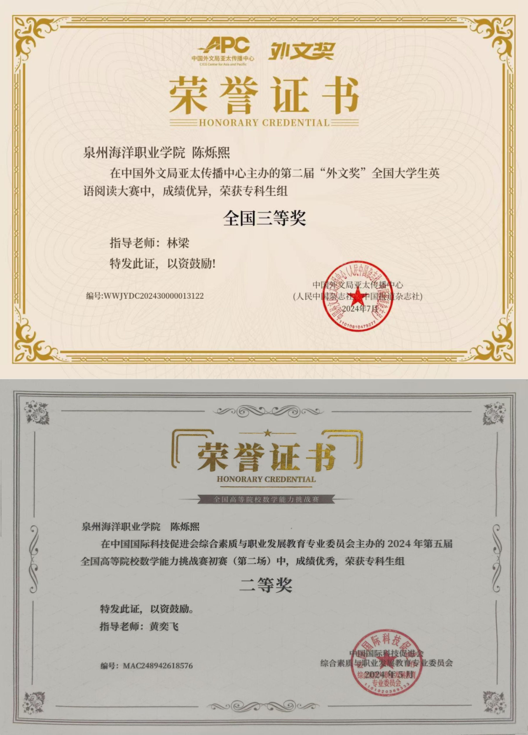 一、陈烁熙:陈烁熙2024年获奖情况:
