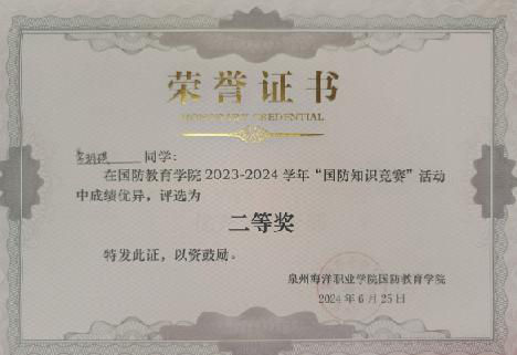 2024年6月2023-2024国防知识竞赛二等奖(院)