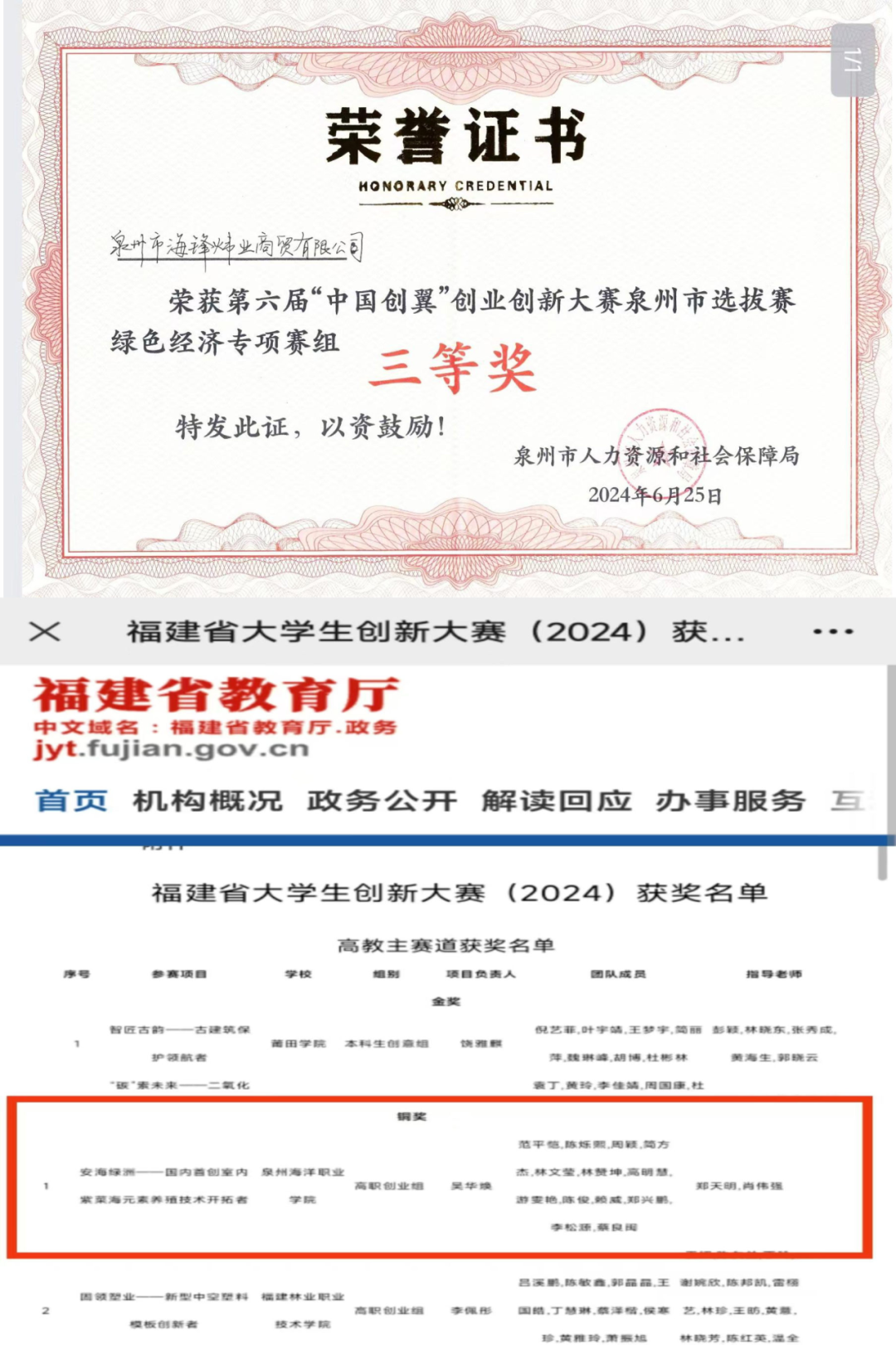 2024年5月中国国际大学生创新大赛 (2024)泉州海洋学院金奖
