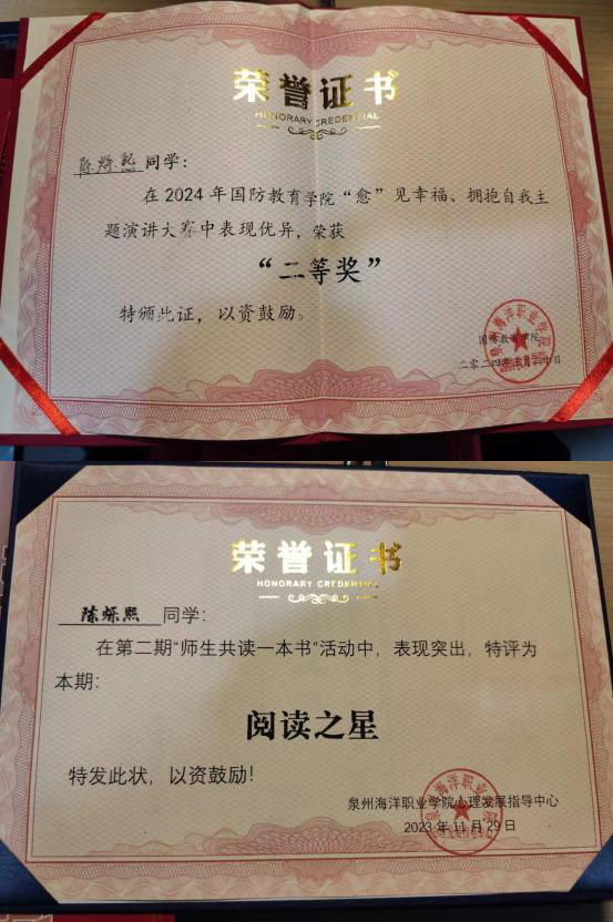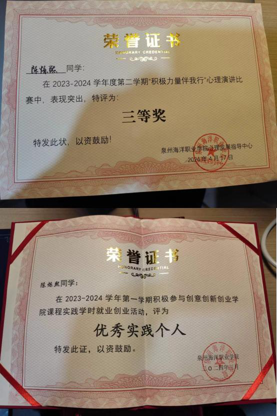 2024年5月泉州海洋职业学院“积极力量伴我行”演讲比赛三等奖