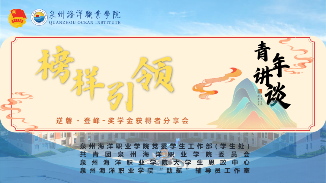 逐梦榜样故事,凝聚青春力量。4月16日,由党委学生工作部(学生处)、校团委及大学生思想政治教育研究中心、“助航”辅导员工作室联合举办的榜样引领|“青年讲谈”(第八期)逆磐·登峰--悟泉海榜样的破浪奋进之道励志故事分享活动在东苑一站式服务大厅开展。