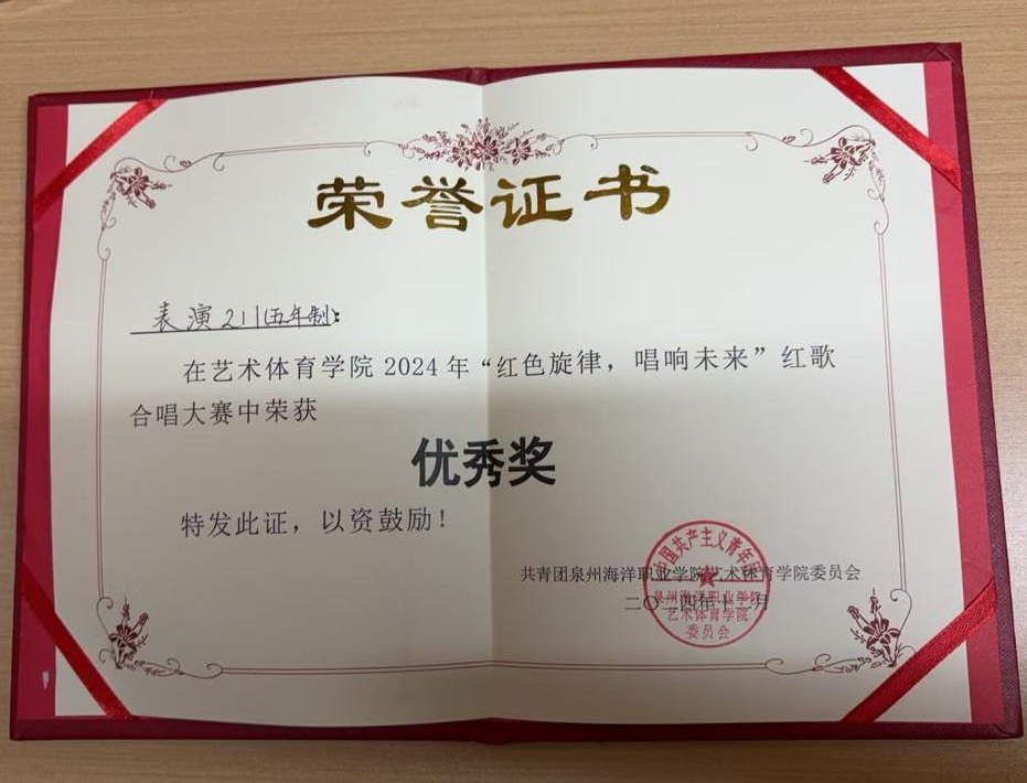 表演 211 班在 2024 年取得了一系列令人瞩目的成绩,充分展现了班级的强大实力和团结奋进的精神风貌。在 2024 年 12 月举办的“红色旋律,唱响未来”红歌比赛中,班级凭借出色的表现荣获优秀奖,同学们用激昂的歌声和整齐的动作,展现了班级强大的凝聚力和向心力;2024 年五月,该班又荣获先进班集体称号,这是对班级整体工作和同学们共同努力的高度认可。此外,班级中还有 3 人凭借自身的优秀能力和出色表现,被聘为校院两级学生组织、社团的负责人,为学校的社团活动和学生工作贡献了自己的力量,也为班级赢得了更多的荣誉.