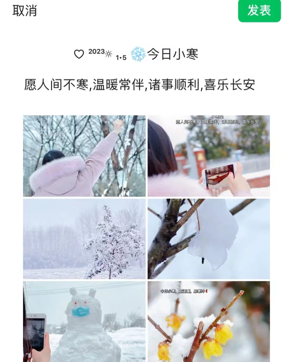 在外漂泊的游子们也已准备踏上归家的路途,奔向新年的团圆,心渐近,春不远,天地小寒,人间向暖。在这素色的冬天,等你披雪来相见,片片六花缀衣衫,灿灿星河落眸间。