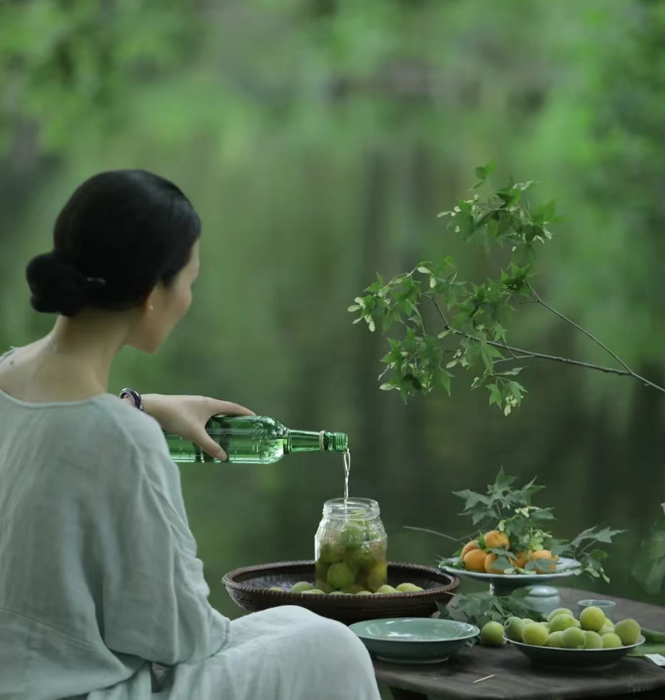 青梅已可煮酒,但还青涩,黄梅雨后,果实才累枝。