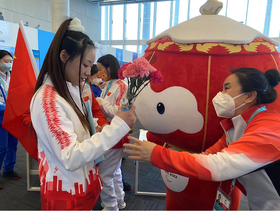 冬残奥村的工作人员和雪容融