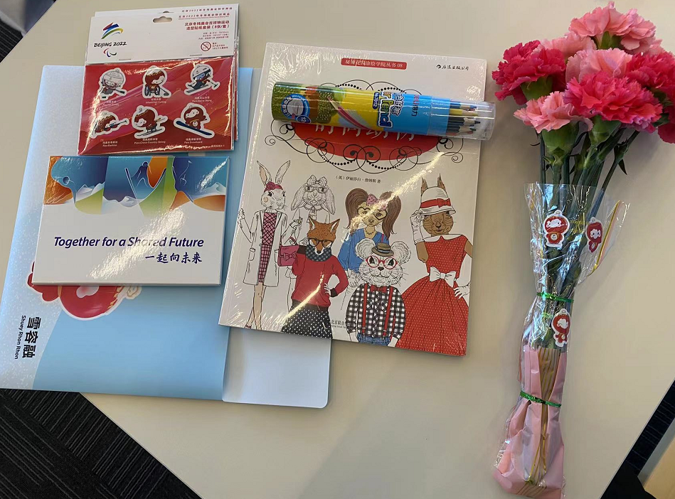 送上了一束鲜花和一个绘本