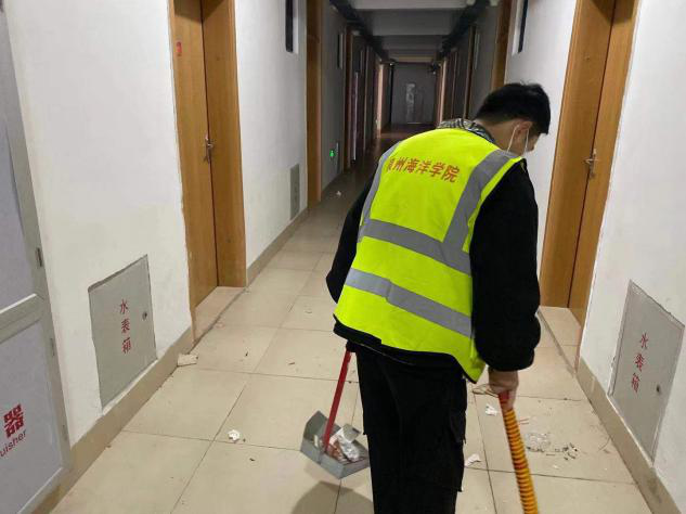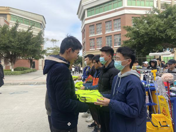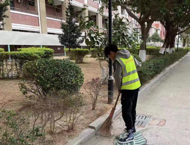 主干道组和绿化组的同学穿着厚厚的衣服,认认真真不辞辛苦的一点一点打扫入袋。看着道路上带着袖章仔细检查的同学,那是安保组在巡逻检查校园安全隐患和违规违纪现象,为校园安全做保障树立良好校园风气。