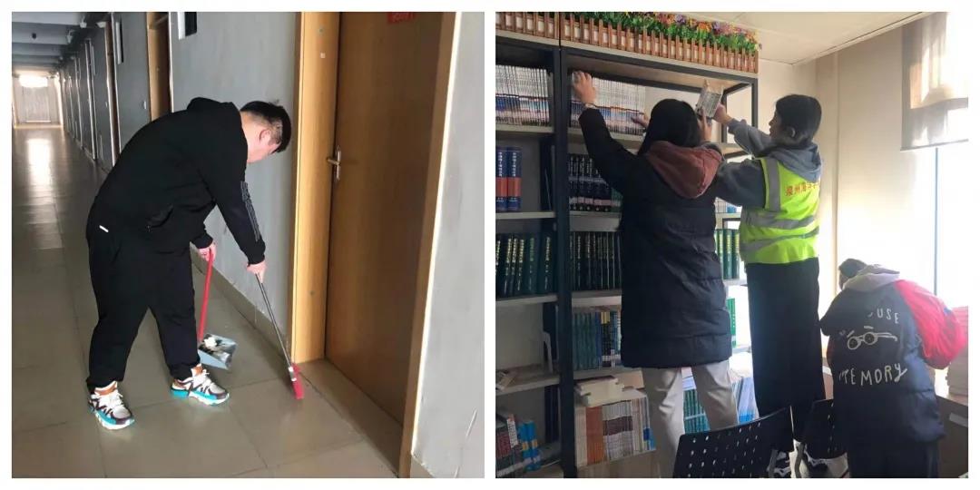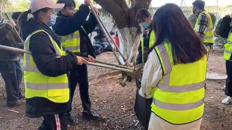 有人说,不下雪却照样过冬天的城市真的是又冷又不浪漫。可迎着冷风,拿着劳动工具仍然欢声笑语的同学们给寂静的冬日增添了靓丽的色彩。