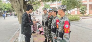 校园安全巡查,教官在行动。为保障同学们在学校的安全,创建和谐校园,我校联合教官和保安成立了护卫队。