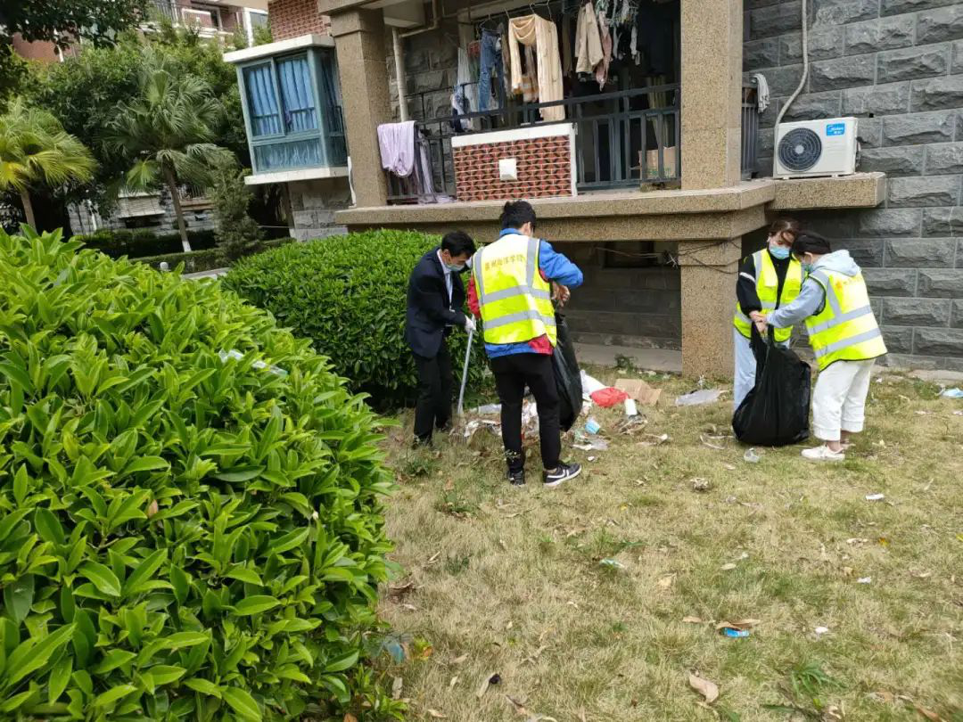 路走过大家手上的垃圾袋已是“战果累累”,地面上留不下一丝色彩。