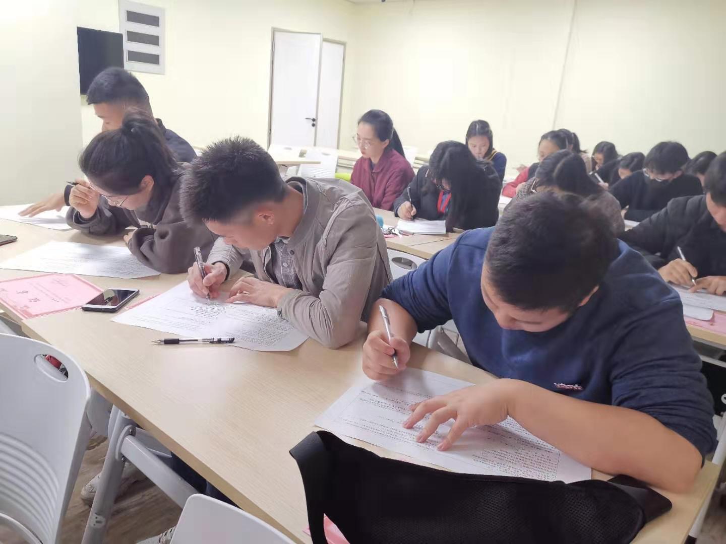 1月8日为基础赛,分为笔试和辨认学生信息,参加本次比赛共有31名班主任。本环节内容涵盖多方面:思政工作、奖助贷、突发事件、学生违纪、等及网文写作,主要考察班主任对相关知识的掌握程度、理解分析信息和解决问题的能力、理论素养、文字表达能力以及网络素养等方面。考试过程中,各班主任认真答题,展现了我校班主任良好的精神风貌。