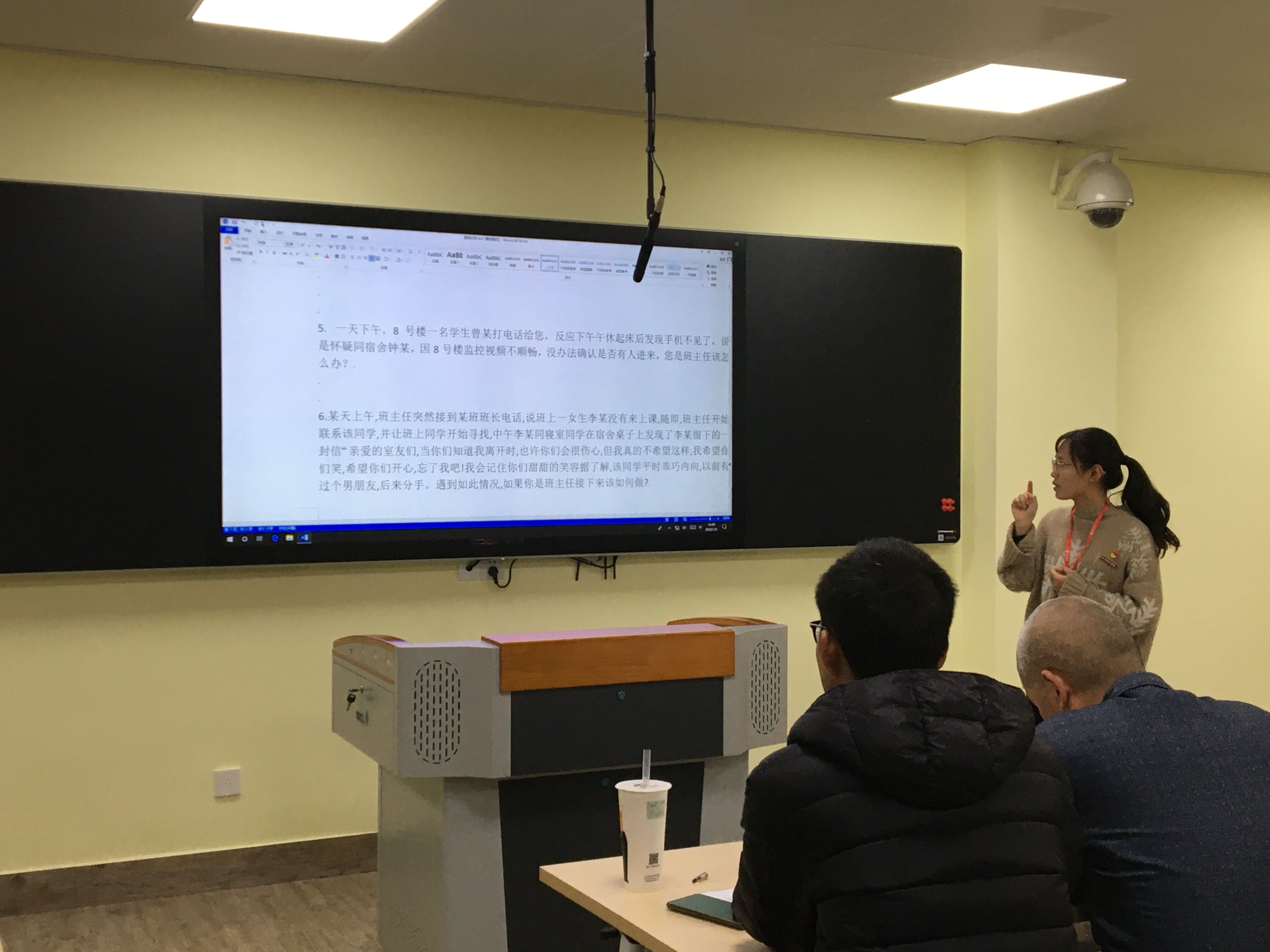 为进一步加强我校班主任队伍建设,推动我校班主任职业化、专业化发展,提升班主任的职业能力和工作水平,我校于2020年1月8日-1月9日进行第一届班主任素质能力大赛,大赛分为基础赛和选拔赛,基础赛包含笔试和学生信息辨识两个环节,选拔赛为案例分析题。