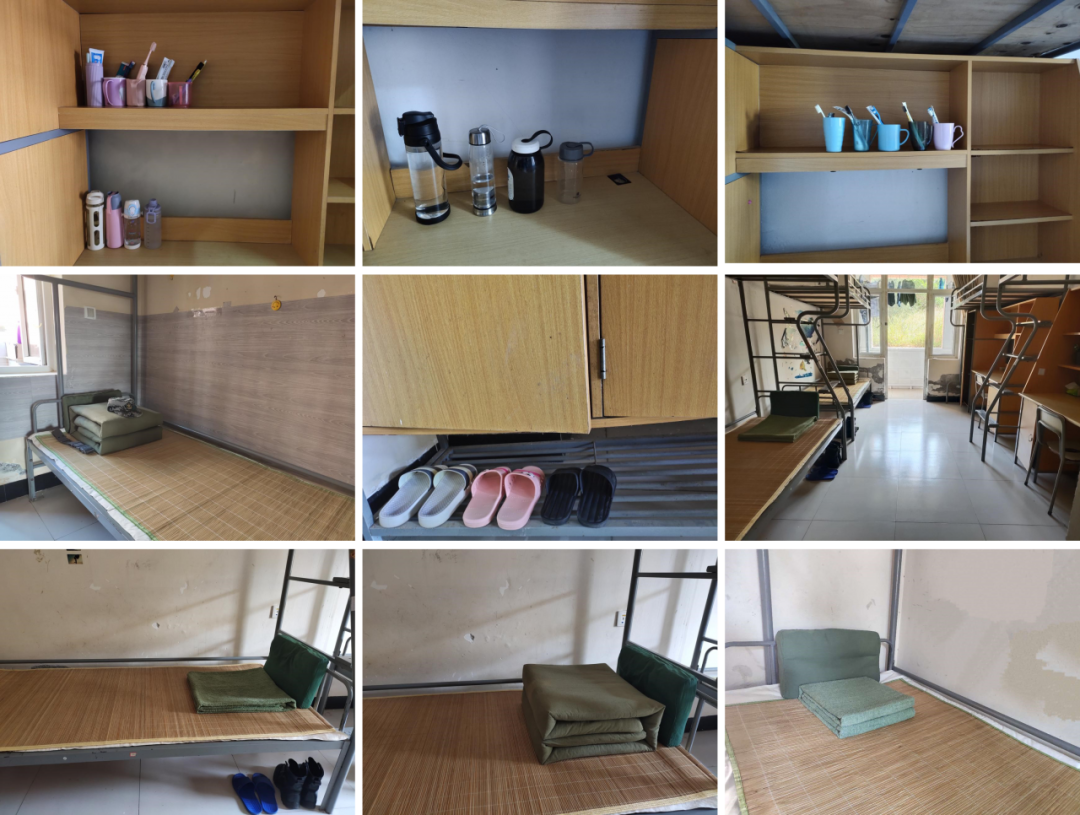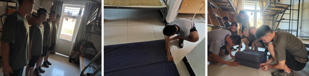 怡人的午后,从叠方方正正的豆腐块开始。牙刷水杯的摆放、朝向统一,被子叠成豆腐块,地面一尘不染。对教官们的内务要求同样严格,做事要实事求是,绝不允许有“将就”、“差不多”的情况,而这样的要求对于教官们以后的训练任务,技能学习都有帮助。
