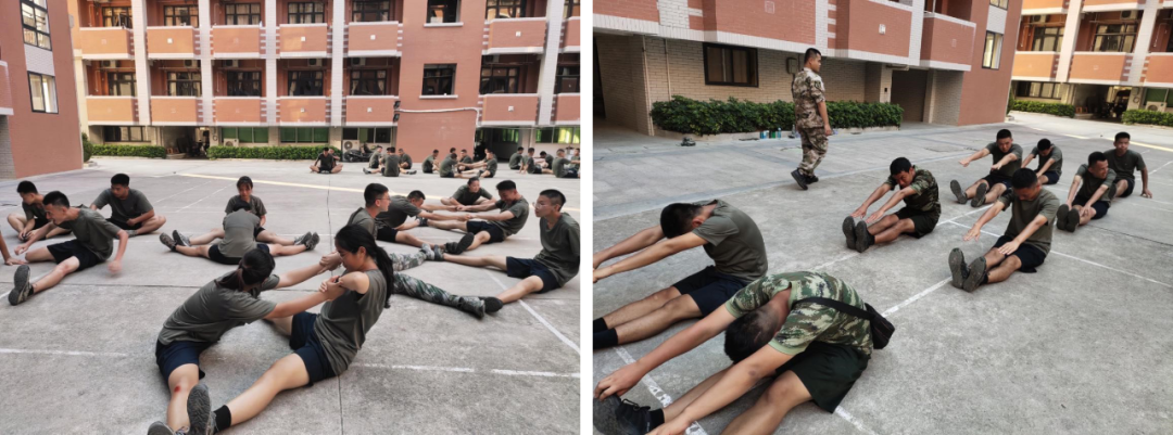 爽朗的清晨,从响彻楼道的起床哨开始。例行早操,“一、二、三、四;一、二、三、四”铿锵有力,回荡在校园的每个角落,一个个拉伸动作,一滴滴挥洒汗水,足以见证教官们集训的辛苦。