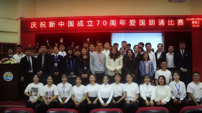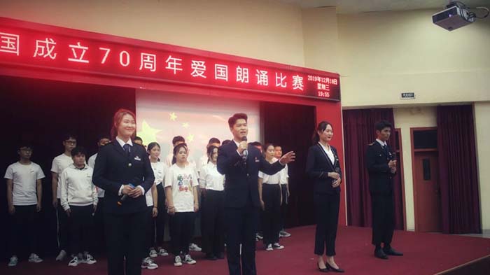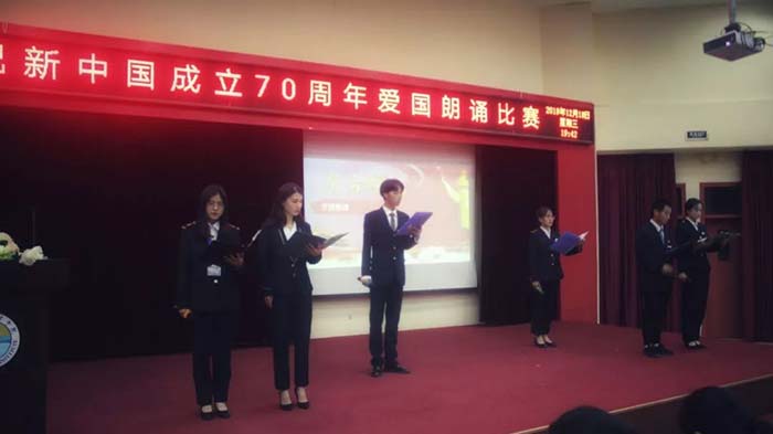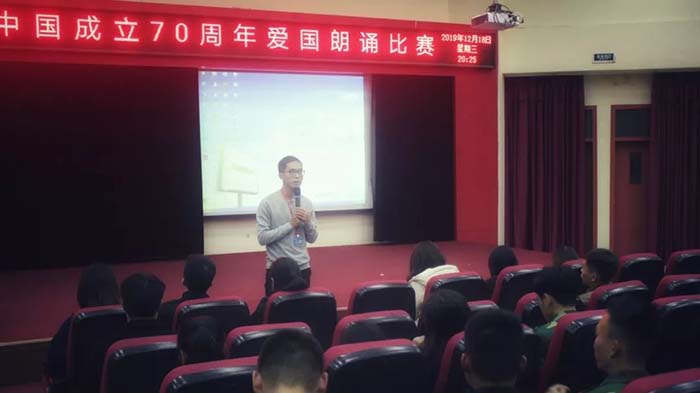 2019年12月18日19时30分,庆祝新中国成立70周年爱国朗诵比赛在2204报告厅拉开帷幕。