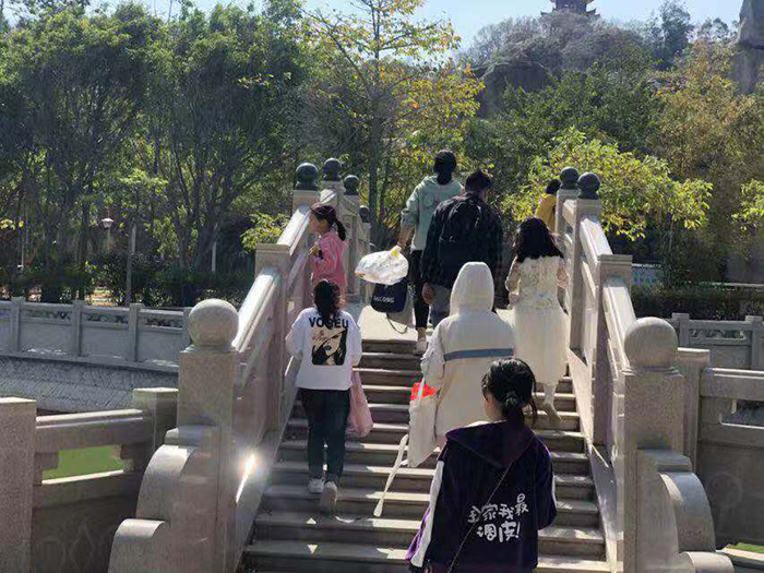 (2)各成员与各自小学生到齐后,进行点名,所有人员到齐后出发