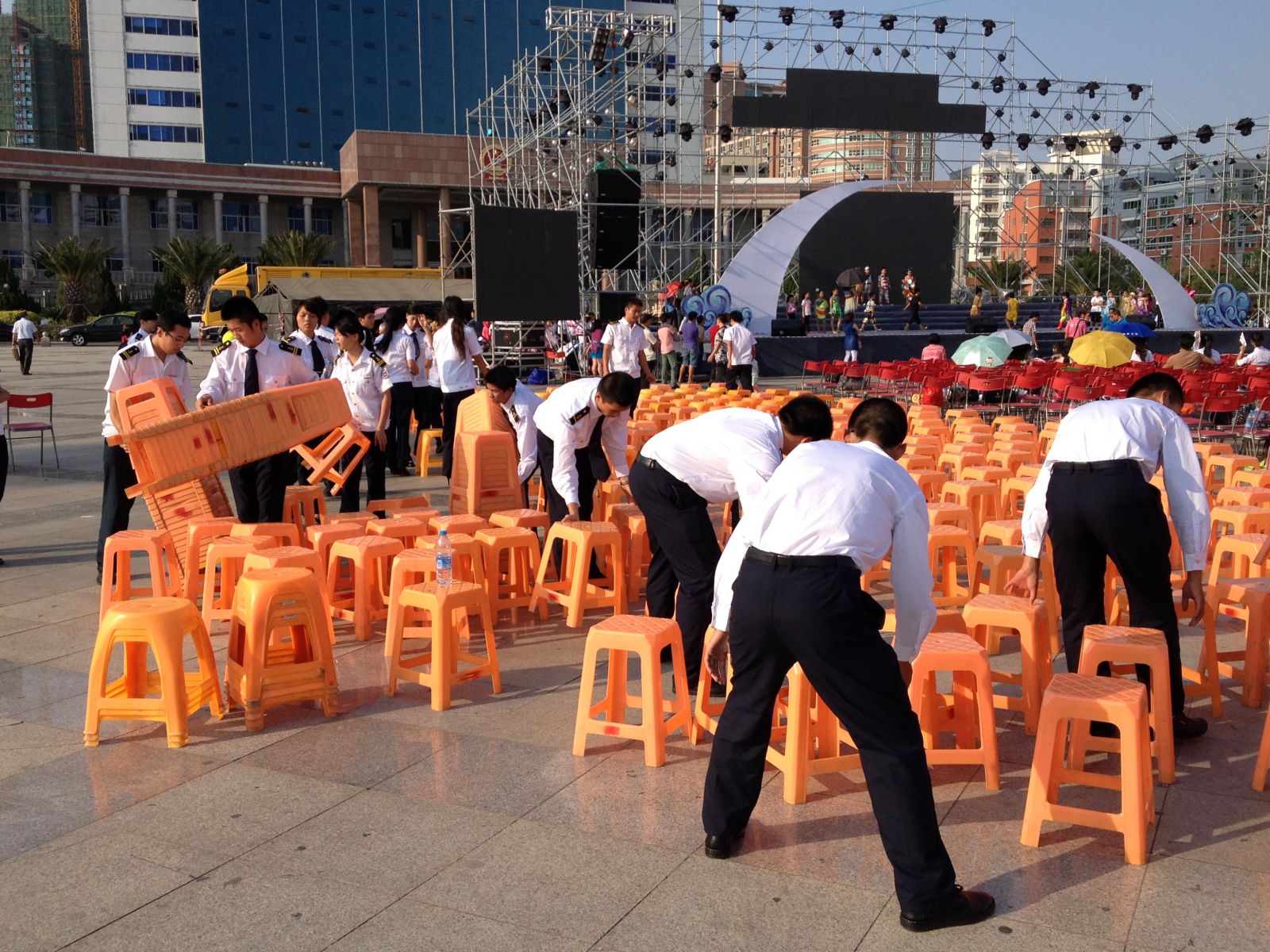 早上8点,泉州海洋学院6名青年志愿者作为舞蹈的参演演员,他们早早就在校门口集合,准备去和石狮海百合艺术团的小朋友们排练。虽然他们扮演的只是一个配角,但他们依然克服万难,友情出演,体现了我院志愿者的青春风貌。更值得一提的是,我院空中乘务班和校院国旗队等八十多名同学,穿着统一的白色制服,踏着整齐的步伐,首次亮相石狮市人民广场,也参与到服务广场文化艺术节的行列中,用他们整齐有力的军姿,为石狮市第十一届广场文化艺术节添上一道靓丽的风景线,为我院对外宣传树立形象,作出贡献。